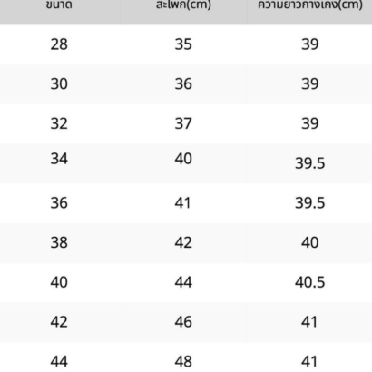 | ไซส์ | 28-32, 34-36, 38-40, 42-44, 46-52 |