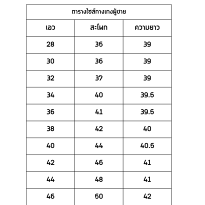 | ไซส์ | 28, 30, 32, 34, 36, 38, 40, 42, 44, 46 |