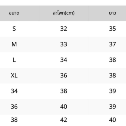 | ไซส์ | S, M, L, XL, 34, 36, 38 |