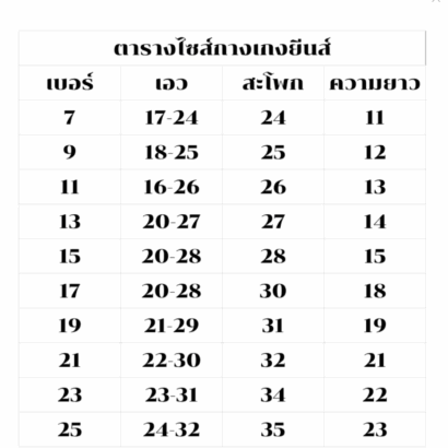 ไซส์ | 7, 9, 11, 13, 15, 17, 19, 21, 23, 25 |