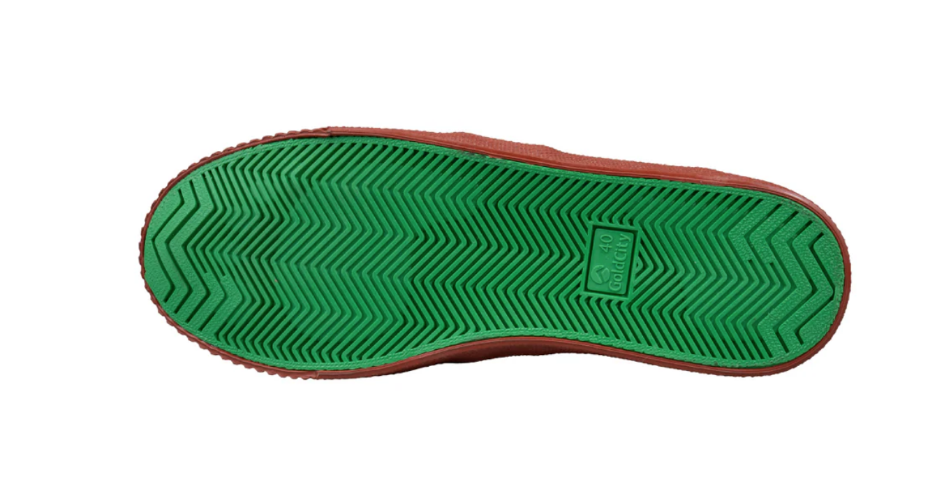 พื้นยางด้านนอก 3 ชั้น ทำจากอยากพาราแท้ ยึดเกาะพื้นได้ดี ไม่ลื่น เสริมความทนทานด้วยลายพื้น 3 ชั้น ที่เป็นลักษณะเฉพาะที่มีเฉพาะรองเท้าผ้าใบ โกลด์ซิตี้