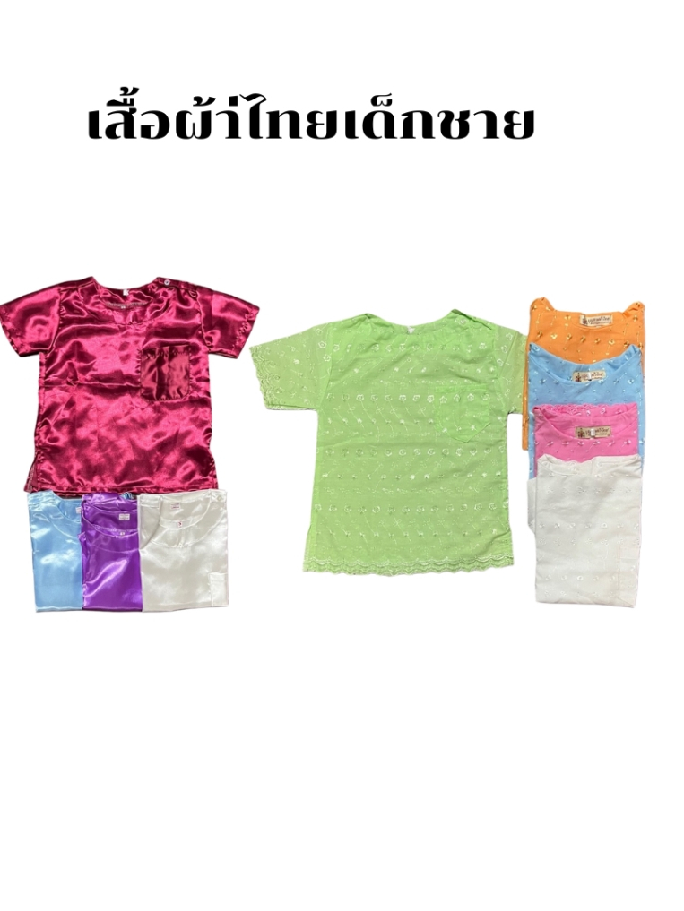 เสื้อผ้าไทยเด็กผู้ชาย ปักลายฉลุ คละสีคละลาย